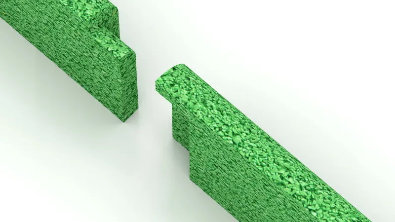 Granulat gumowy wiązany PU łączy solidność z sprężystością – listwa tłumi uderzenia i chroni przed śladami użytkowania. Dzięki elastyczności łatwo prowadzić ją wzdłuż delikatnych łuków czy nieznacznych nierówności ściany. Zaokrąglona krawędź przednia sprawia, że wykończenie jest dyskretne i eleganckie.