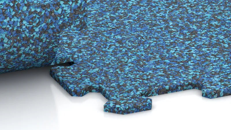 Nawierzchnia Fitness Kompakt dostępna jest w formatach 48,5 × 48,5 cm i 97 × 97 cm, w grubościach 0,8 cm i 1,6 cm. Dzięki temu można ją elastycznie stosować zarówno w małych, jak i dużych przestrzeniach. Większy format zmniejsza liczbę spoin i daje spokojniejszy efekt powierzchni, podczas gdy mniejszy format jest poręczny i łatwy w montażu.