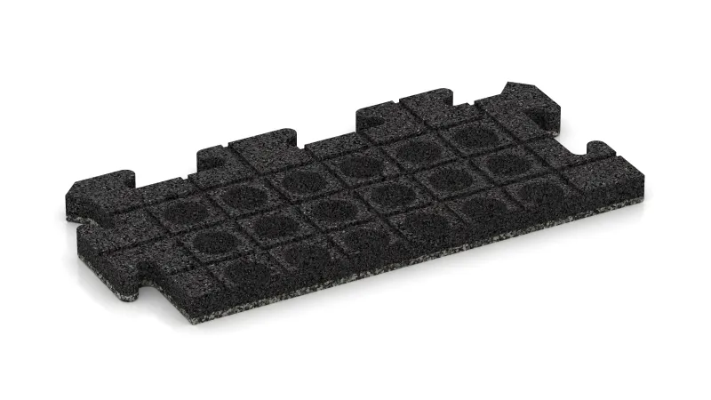 Płyta brzegowa HD gwarantuje precyzyjne i trwałe wykończenie krawędzi zewnętrznych powierzchni ułożonych z płyt o wysokiej gęstości. Każdy element stanowi połowę pełnej płyty puzzle: strona wewnętrzna posiada charakterystyczne łączenie typu puzzle i doskonale łączy się z pozostałymi płytami, podczas gdy strona zewnętrzna tworzy gładką, prostą krawędź końcową. Dzięki temu cała powierzchnia otrzymuje funkcjonalne i estetyczne obramowanie.