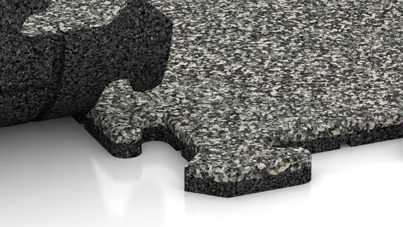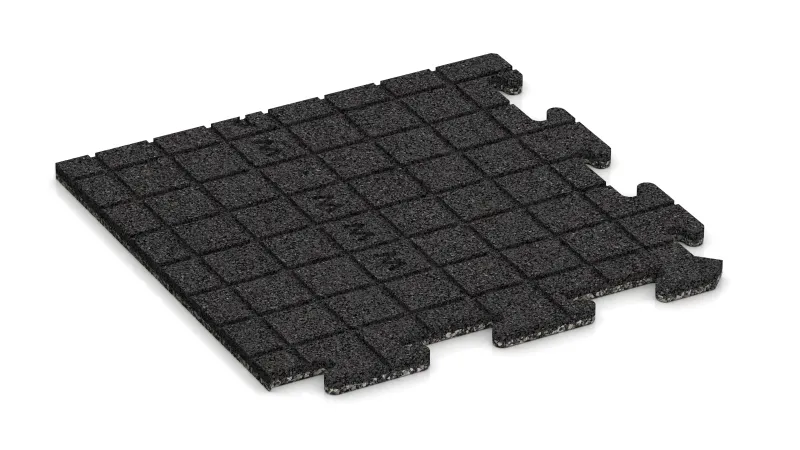 Płyta narożna gwarantuje równe i estetyczne wykończenie w każdym z czterech narożników powierzchni wyłożonej płytami. Każdy element to jedna czwarta pełnej płyty puzzle: wewnętrzne boki posiadają charakterystyczne łączenie typu puzzle i idealnie pasują do pozostałych płyt, natomiast boki zewnętrzne są gładkie i proste. Dzięki temu cała powierzchnia otrzymuje spójne i funkcjonalne obramowanie.