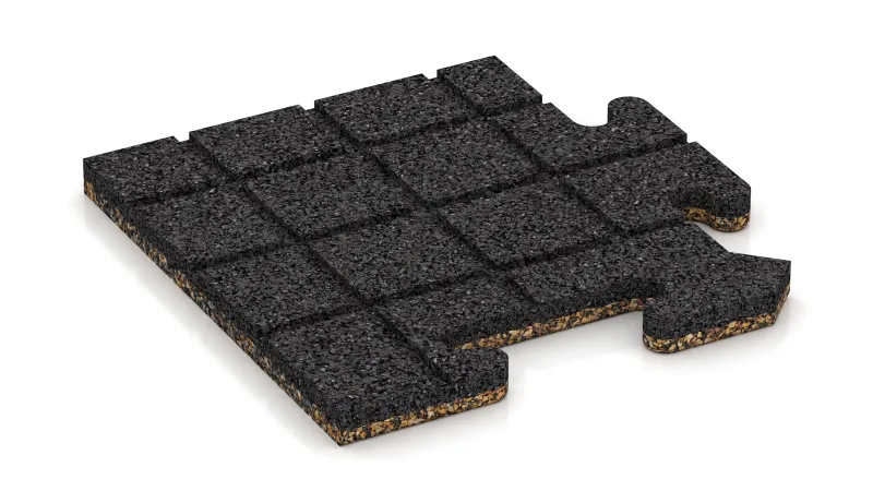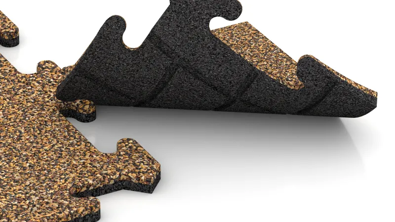 Płyta narożna HD gwarantuje precyzyjne i trwałe wykończenie narożników w powierzchniach ułożonych z płyt o wysokiej gęstości. Każdy element stanowi jedną czwartą pełnej płyty puzzle: wewnętrzne boki wyposażone są w charakterystyczne łączenie typu puzzle i dokładnie łączą się z pozostałymi płytami, natomiast boki zewnętrzne są proste i tworzą wyraźną krawędź zakończeniową. W efekcie cała powierzchnia otrzymuje solidną i wizualnie jednolitą ramę.
