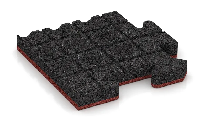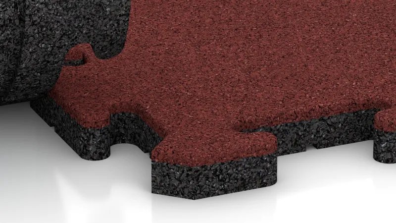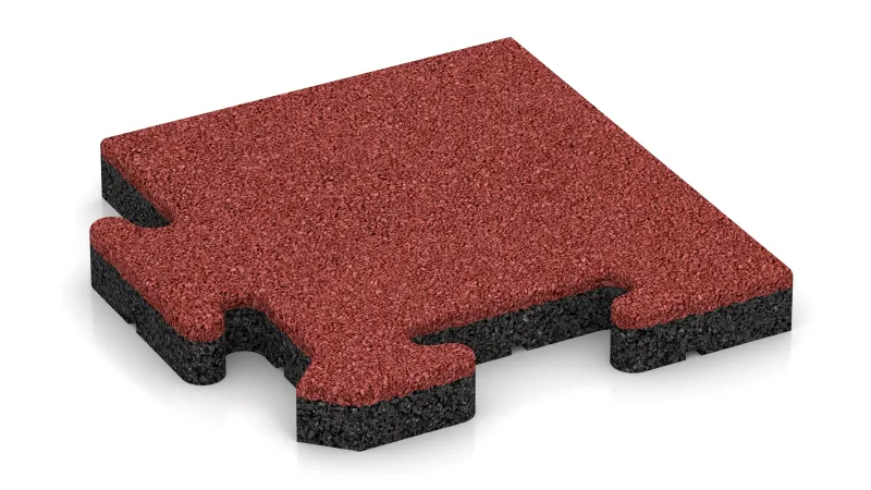 Płyta narożna gwarantuje równe i estetyczne wykończenie w każdym z czterech narożników powierzchni wyłożonej płytami. Każdy element to jedna czwarta pełnej płyty puzzle: wewnętrzne boki posiadają charakterystyczne łączenie typu puzzle i idealnie pasują do pozostałych płyt, natomiast boki zewnętrzne są gładkie i proste. Dzięki temu cała powierzchnia otrzymuje spójne i funkcjonalne obramowanie.