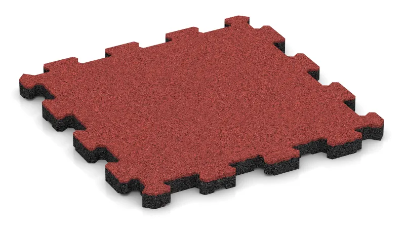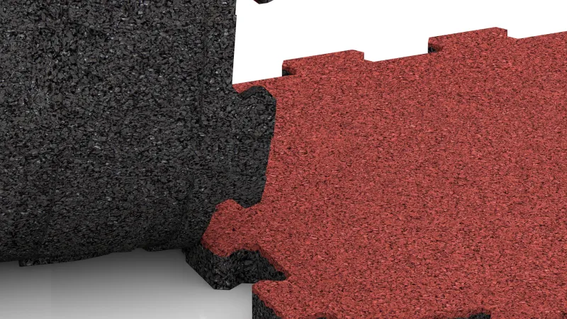 Płytki powstają z granulatu gumowego łączonego poliuretanem. Duże bloki są prasowane, pozostawiane do utwardzenia, a następnie precyzyjnie wycinane. W ten sposób uzyskuje się kalibrowane elementy o dokładnych wymiarach i gładkiej powierzchni – co ułatwia montaż i podnosi estetykę wykończenia.