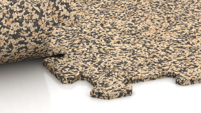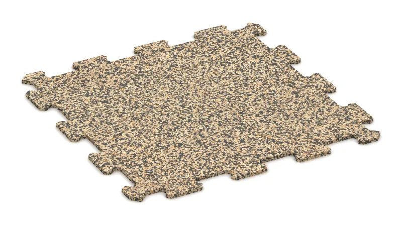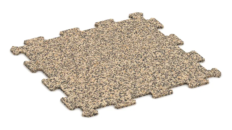 Płytki powstają z granulatu gumowego łączonego poliuretanem. Duże bloki są prasowane, pozostawiane do utwardzenia, a następnie precyzyjnie wycinane. W ten sposób uzyskuje się kalibrowane elementy o dokładnych wymiarach i gładkiej powierzchni – co ułatwia montaż i podnosi estetykę wykończenia.