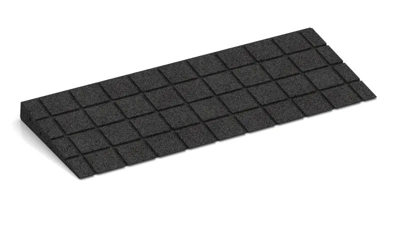 Produkt wykonany jest z granulatu gumowego łączonego spoiwem PU. Rampa jest wytrzymała, elastyczna i tłumi wibracje oraz hałas. Jej antypoślizgowa powierzchnia zapewnia bezpieczne użytkowanie nawet w wilgotnych warunkach, umożliwiając przejazd wózków inwalidzkich, dziecięcych czy transportowych oraz swobodne przechodzenie pieszych.
