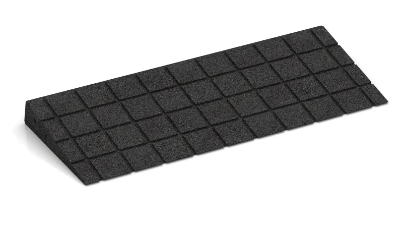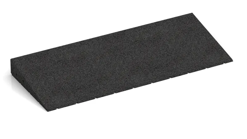 Produkt wykonany jest z granulatu gumowego łączonego spoiwem PU. Rampa jest wytrzymała, elastyczna i tłumi wibracje oraz hałas. Jej antypoślizgowa powierzchnia zapewnia bezpieczne użytkowanie nawet w wilgotnych warunkach, umożliwiając przejazd wózków inwalidzkich, dziecięcych czy transportowych oraz swobodne przechodzenie pieszych.
